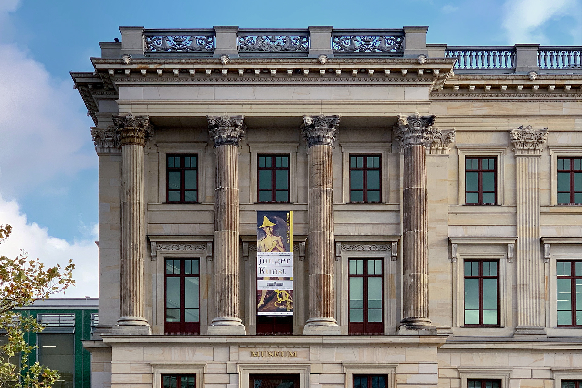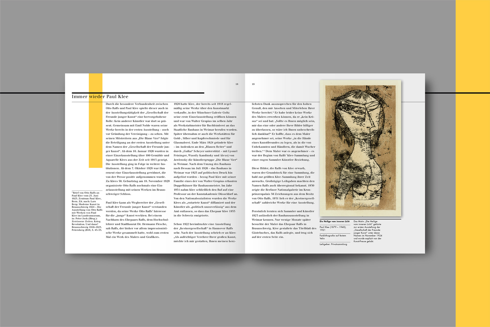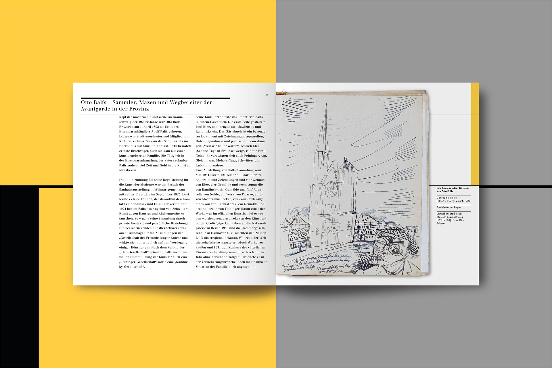 Die Gestaltung der Ausstellung und der Kommunikationsmedien folgt dem Gedanken der Moderne der 1920er Jahre: Balken- und Linienelemente, kräftige Farben und eine klare Aufteilung von Fläche und Raum stehen im spannenden Kontrast zu den historischen Räumen des wiederaufgebauten Braunschweiger Residenzschlosses – heute wie damals.